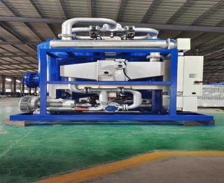 吸附劑的冷卻階段來氣體自環(huán)境大氣,鼓風(fēng)機正轉(zhuǎn)來氣體自環(huán)境大氣作為冷量載體經(jīng)過冷卻器冷卻形成冷量流體對被加熱的吸附劑加以吹冷,這股吹冷用的冷量流體帶走吸附劑的熱量后,由排氣孔排出,冷卻到一定程度后鼓風(fēng)機反轉(zhuǎn),利用吸附塔內(nèi)殘留的空氣作為冷量流體在吸附塔內(nèi)進(jìn)行內(nèi)循環(huán)冷吹,這種吹冷方式不存在浪費壓縮空氣的問題。